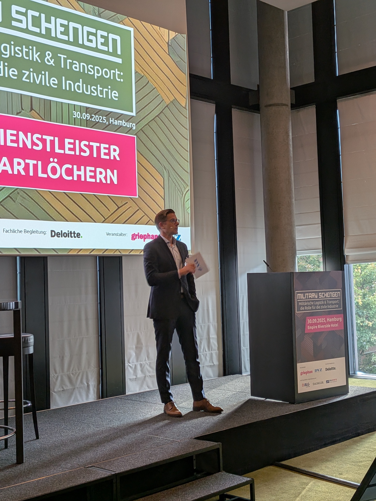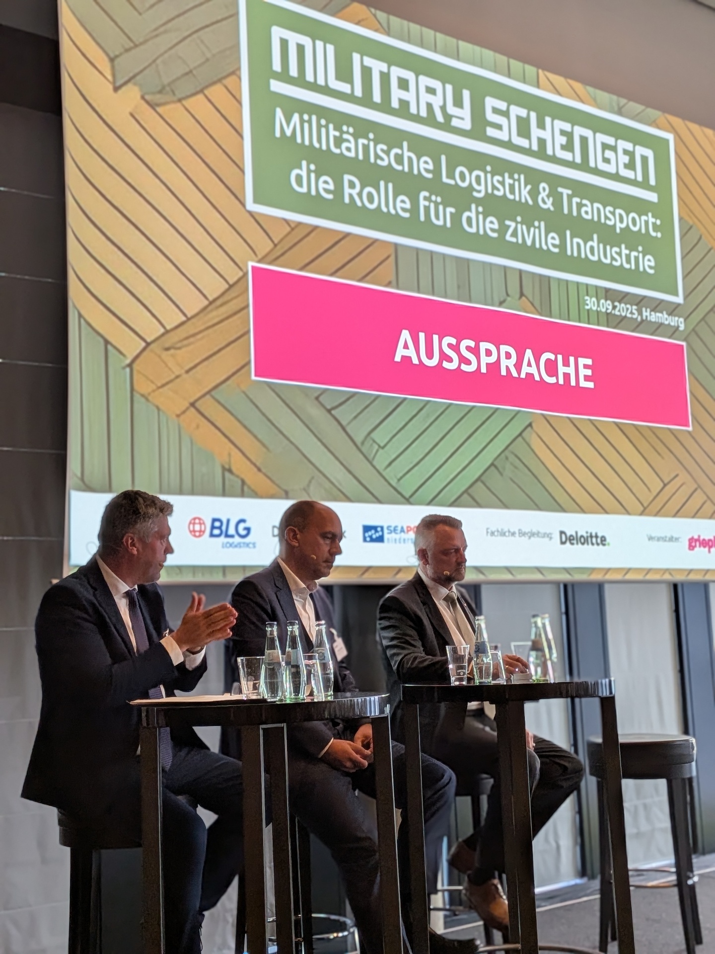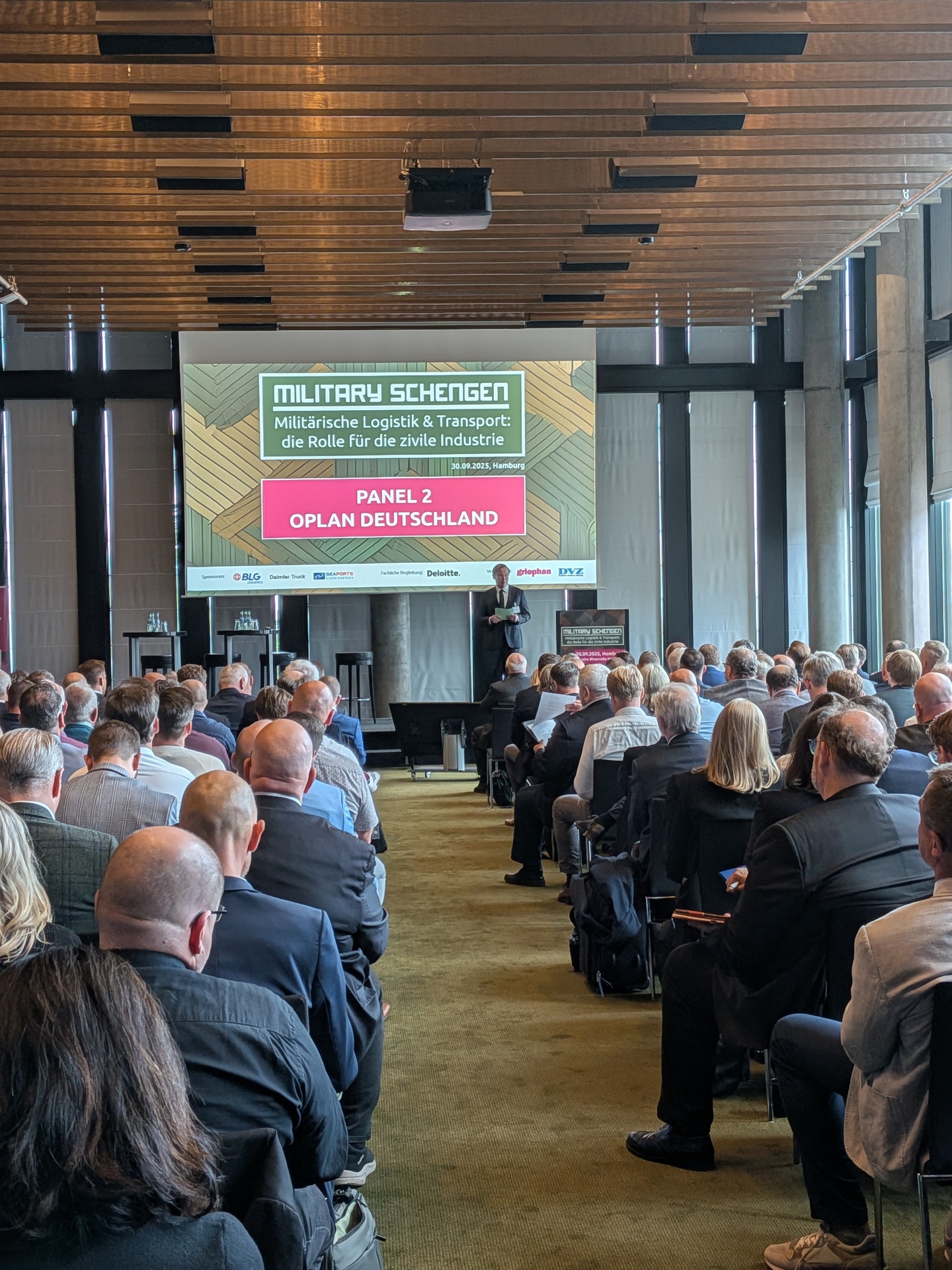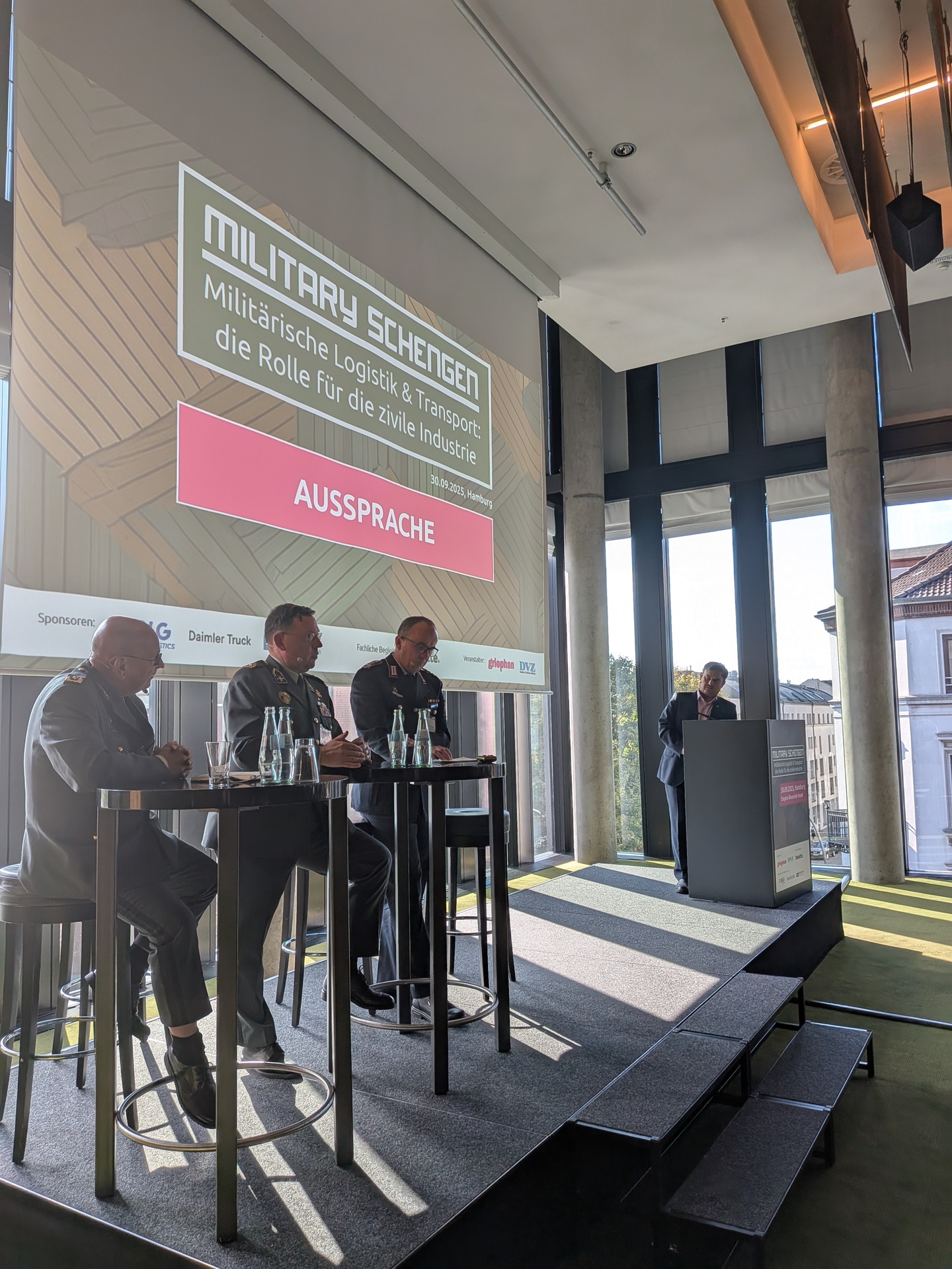 Am 30. September 2025 fand die diesjährige Veranstaltung „MILITARY SCHENGEN - Militärische Logistik & Transport“ im Empire Riverside in Hamburg mit rund 300 Teilnehmenden statt.